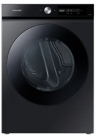 Samsung Bespoke DVE46BB6700VAC Dryer, 27″ Width, Electric Dryer, 7.5 cu. ft. Capacity, Steam Clean, 19 Dry Cycles, 5 Temperature Settings, Stackable, Plastic Drum, Wifi Enabled, Black Stainless Steel colour Steam Hose Kit Included
